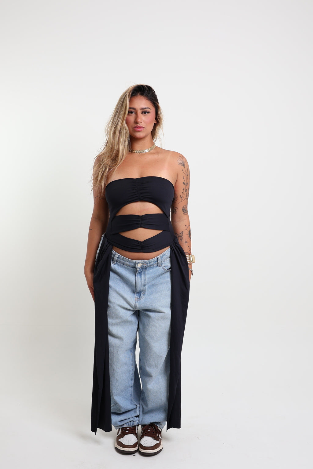 Cropped em poliamida com recortes